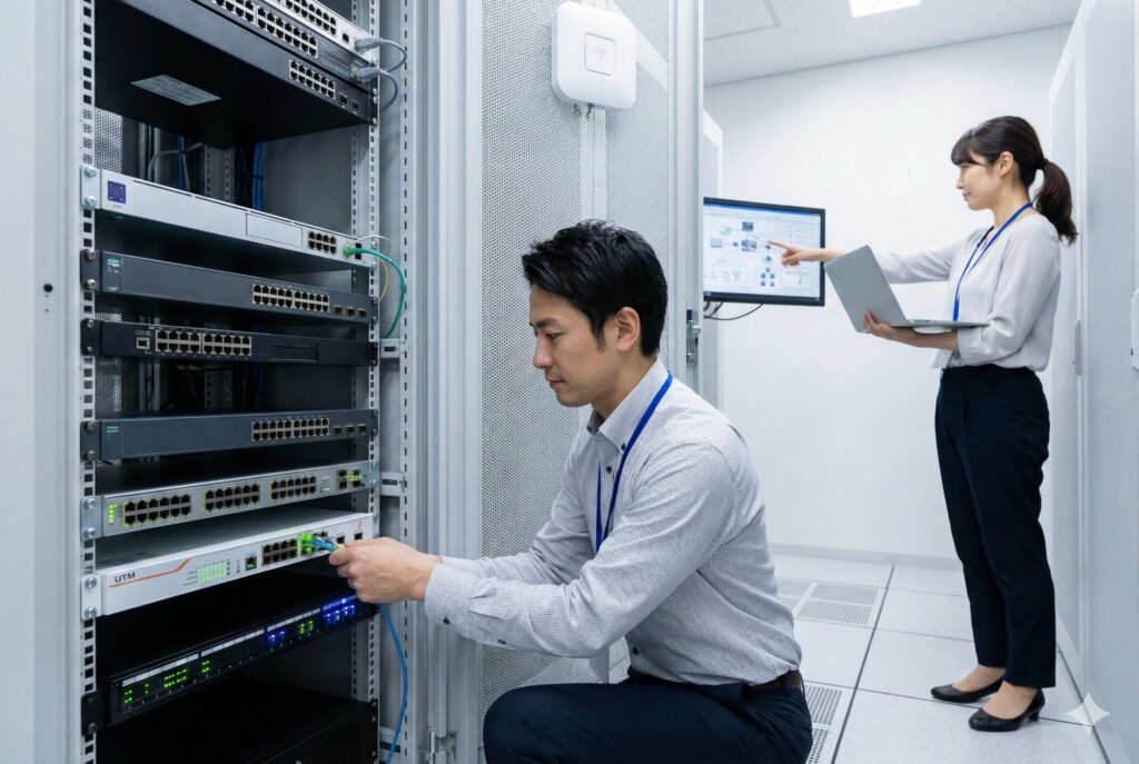 快適で安全なオフィスネットワーク環境を構築します。外部からの脅威を防ぐUTM(統合脅威管理)の導入や、社内Wi-Fi環境の整備など、セキュリティと利便性を両立させたネットワーク設計を行います。